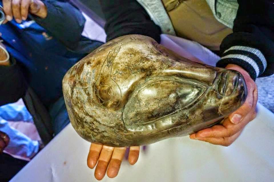 A maioria destes objetos foram trabalhados em metais preciosos como ouro e cobre. Outros são feitos de pedra. Essas cabeças que também foram esculpidas e têm esculturas que parecem ser cometas e algum tipo de naves sobre elas.